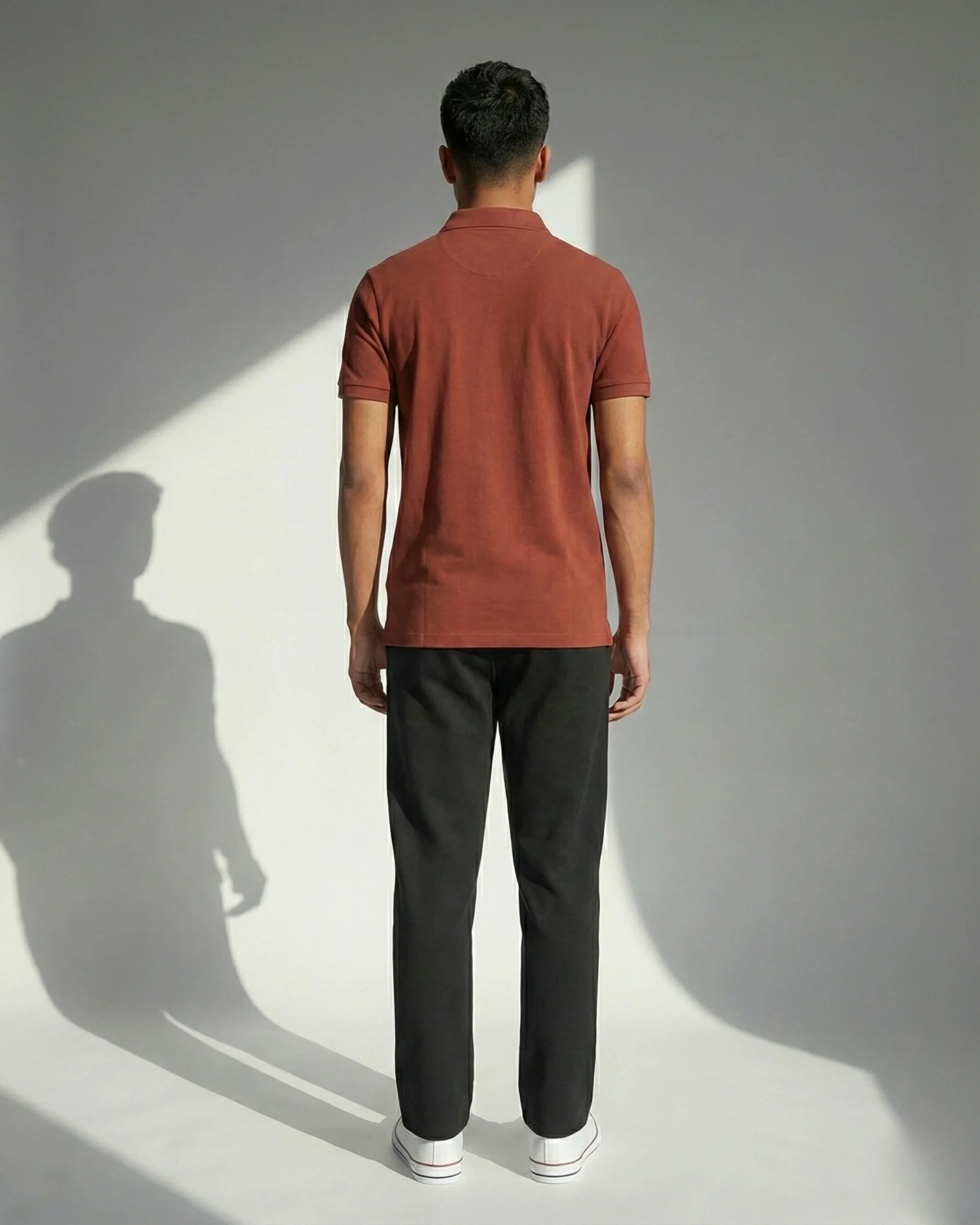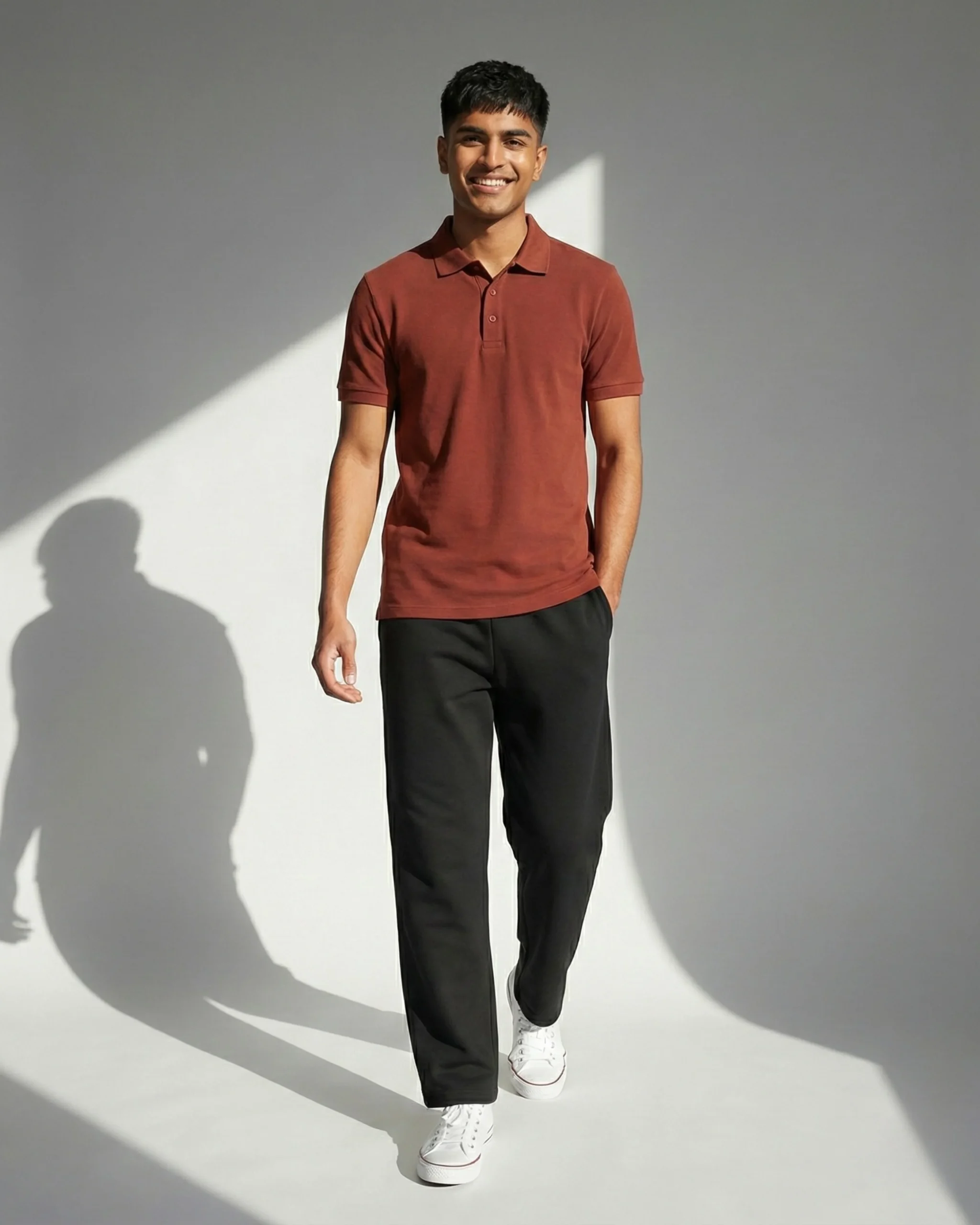 Brick Red Polo T-Shirt & Sweatpants Black Combo