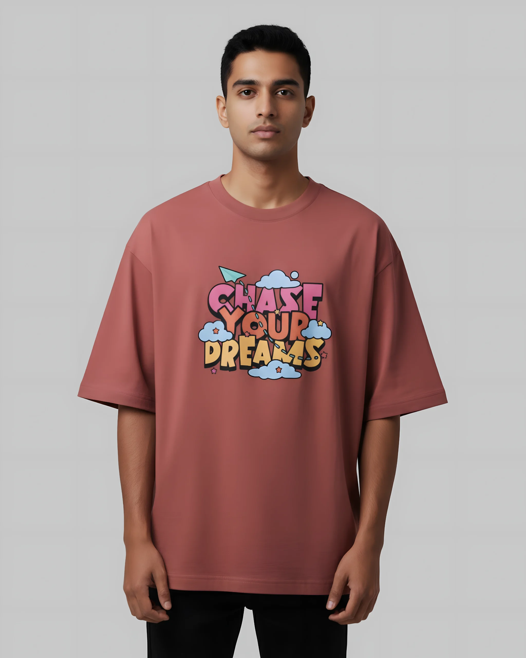 Oversized 240 GSM, 100% Cotton, Super Combed, Pre Shrunk, Bio Washed, Lycra Ribbed Neck, Unisex Oversized Fit