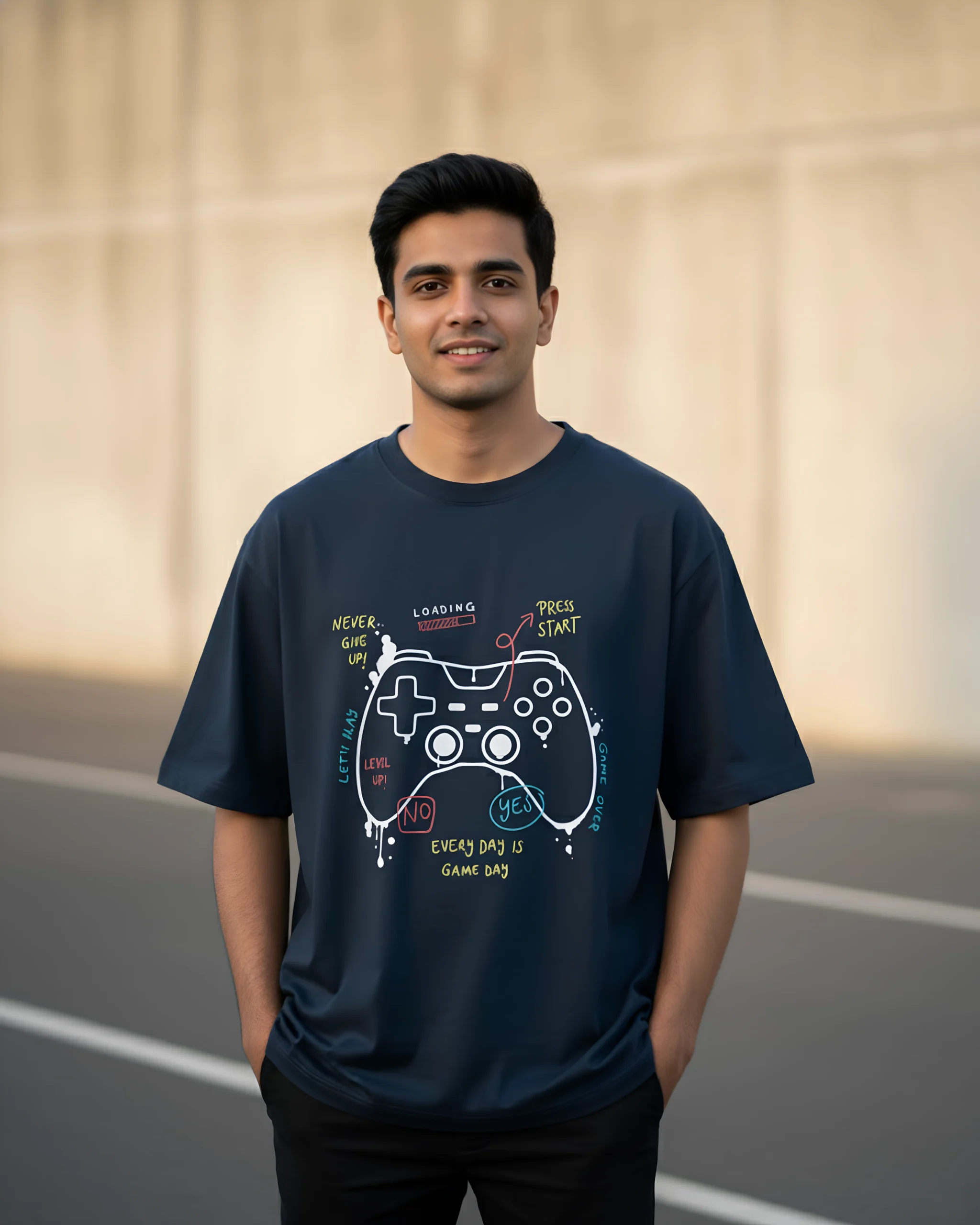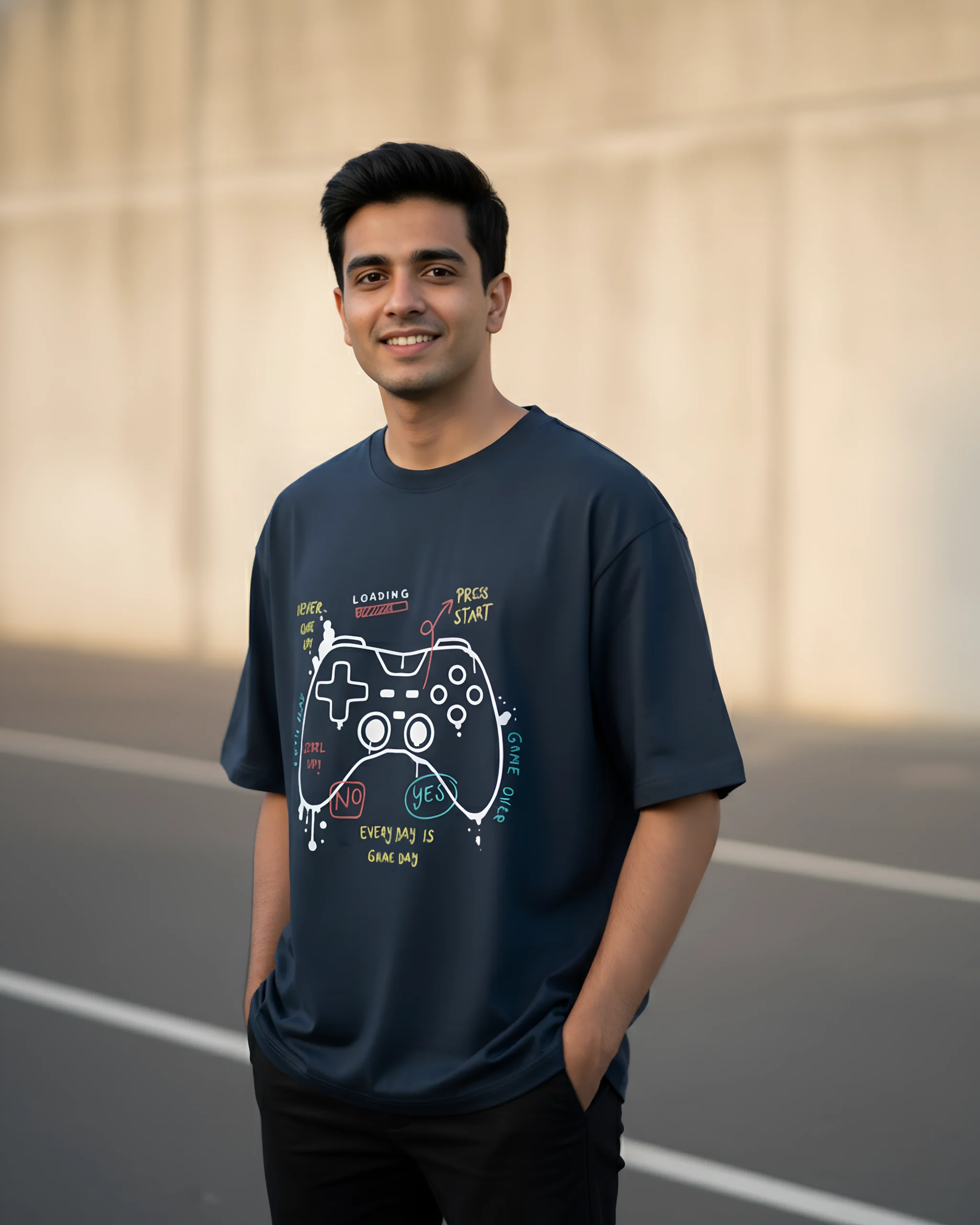 Oversized 240 GSM, 100% Cotton, Super Combed, Pre Shrunk, Bio Washed, Lycra Ribbed Neck, Unisex Oversized Fit