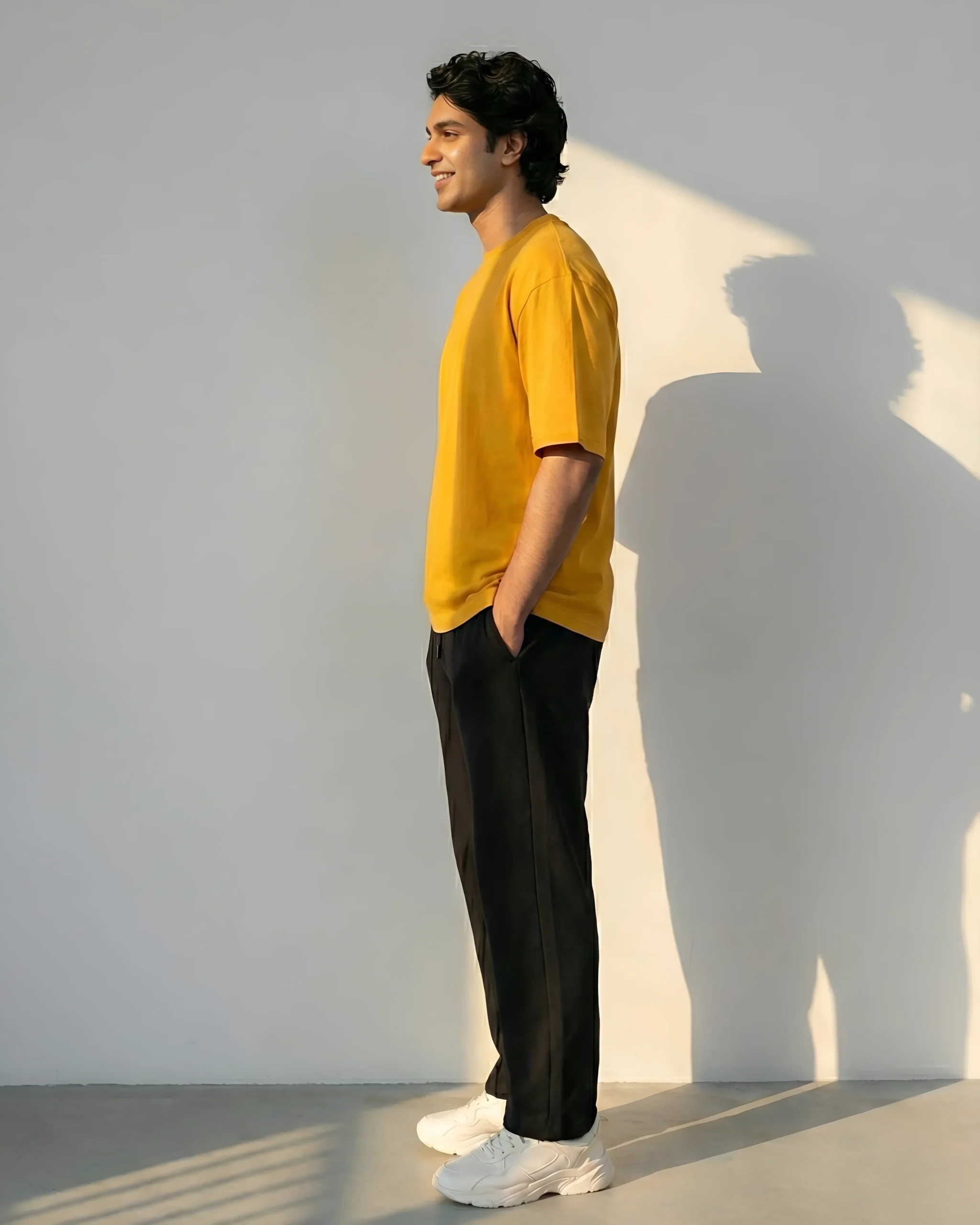 Golden Yellow Oversized T-Shirt & Sweatpants Black Combo