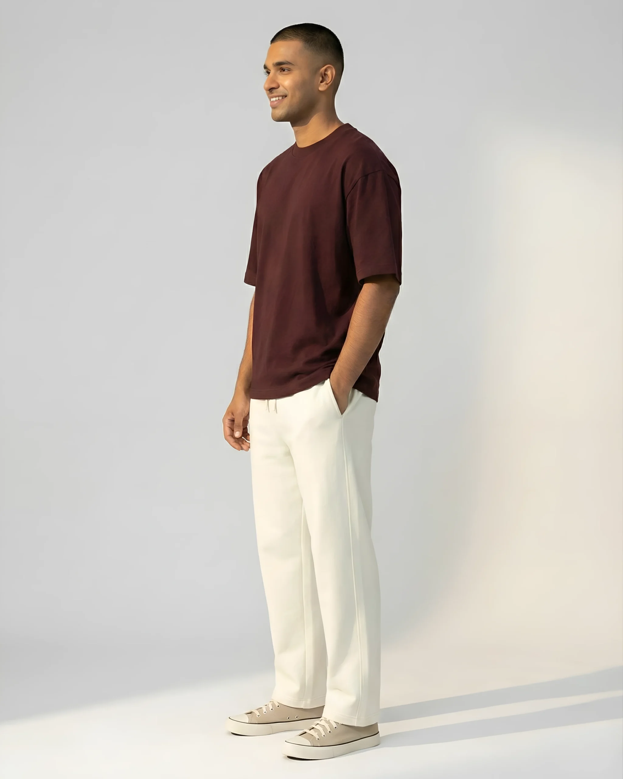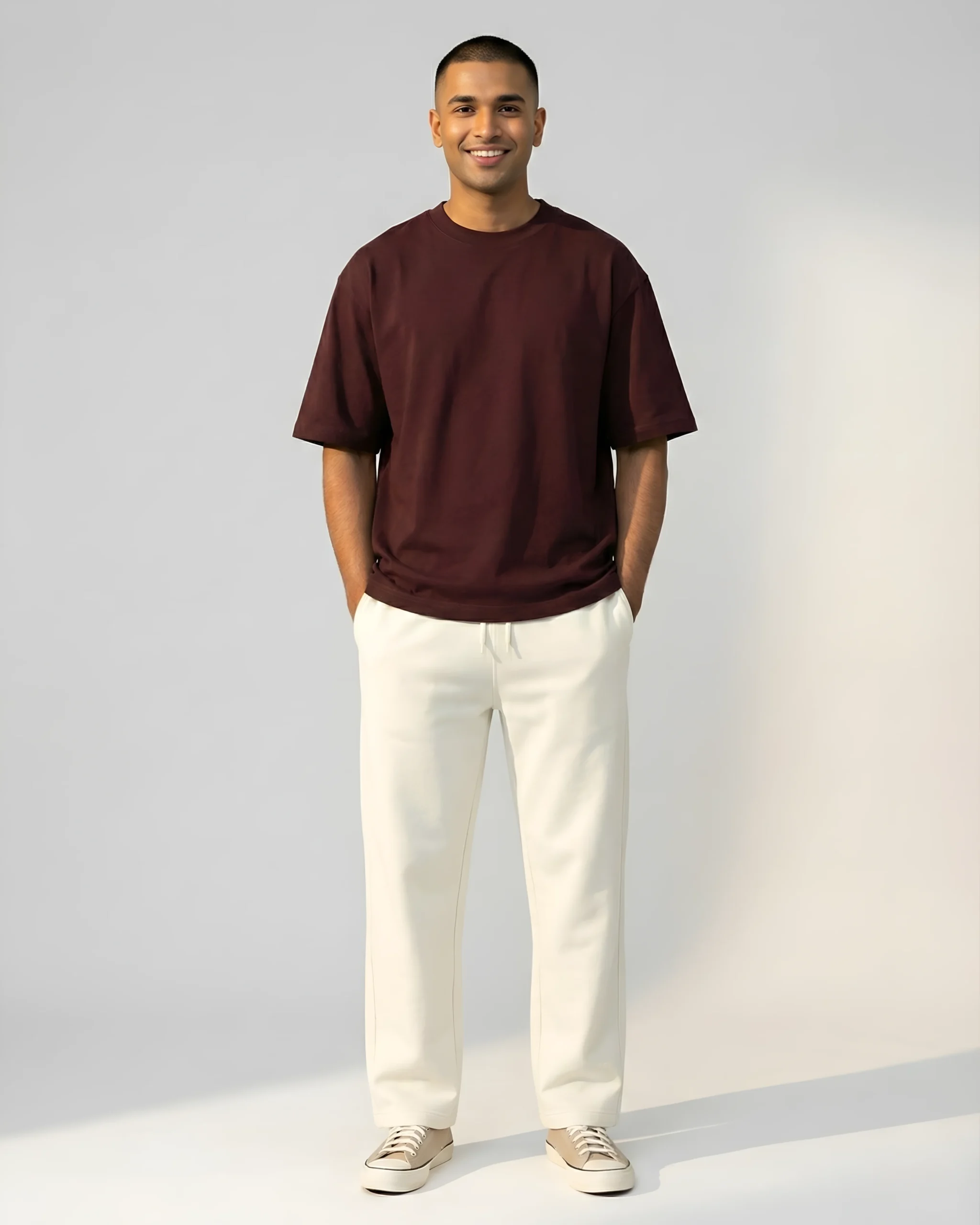 Maroon Oversized T-Shirt & Sweatpants Off‑white Combo