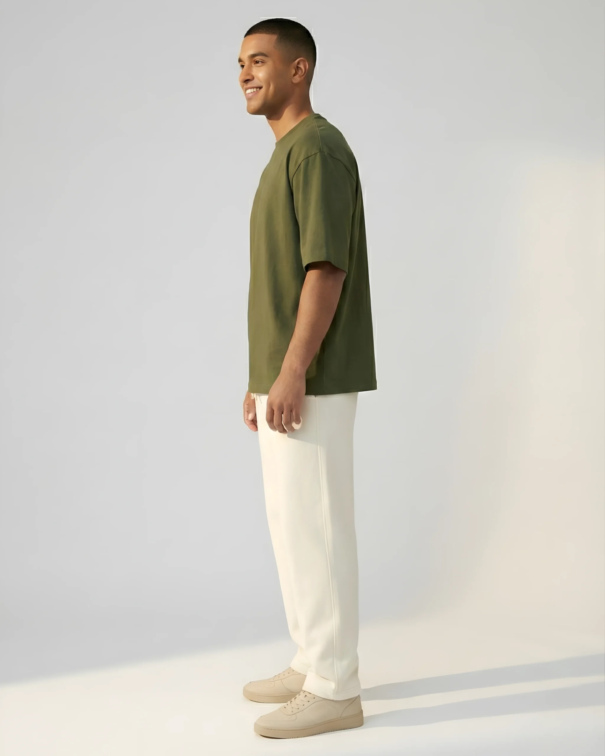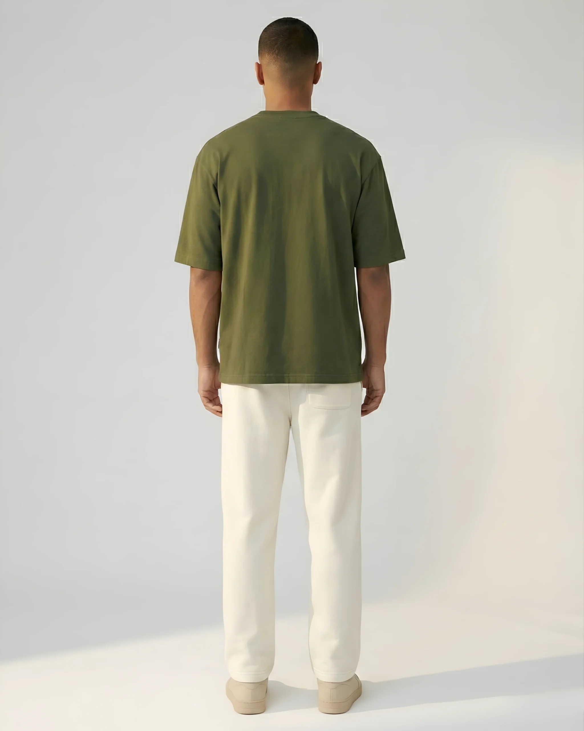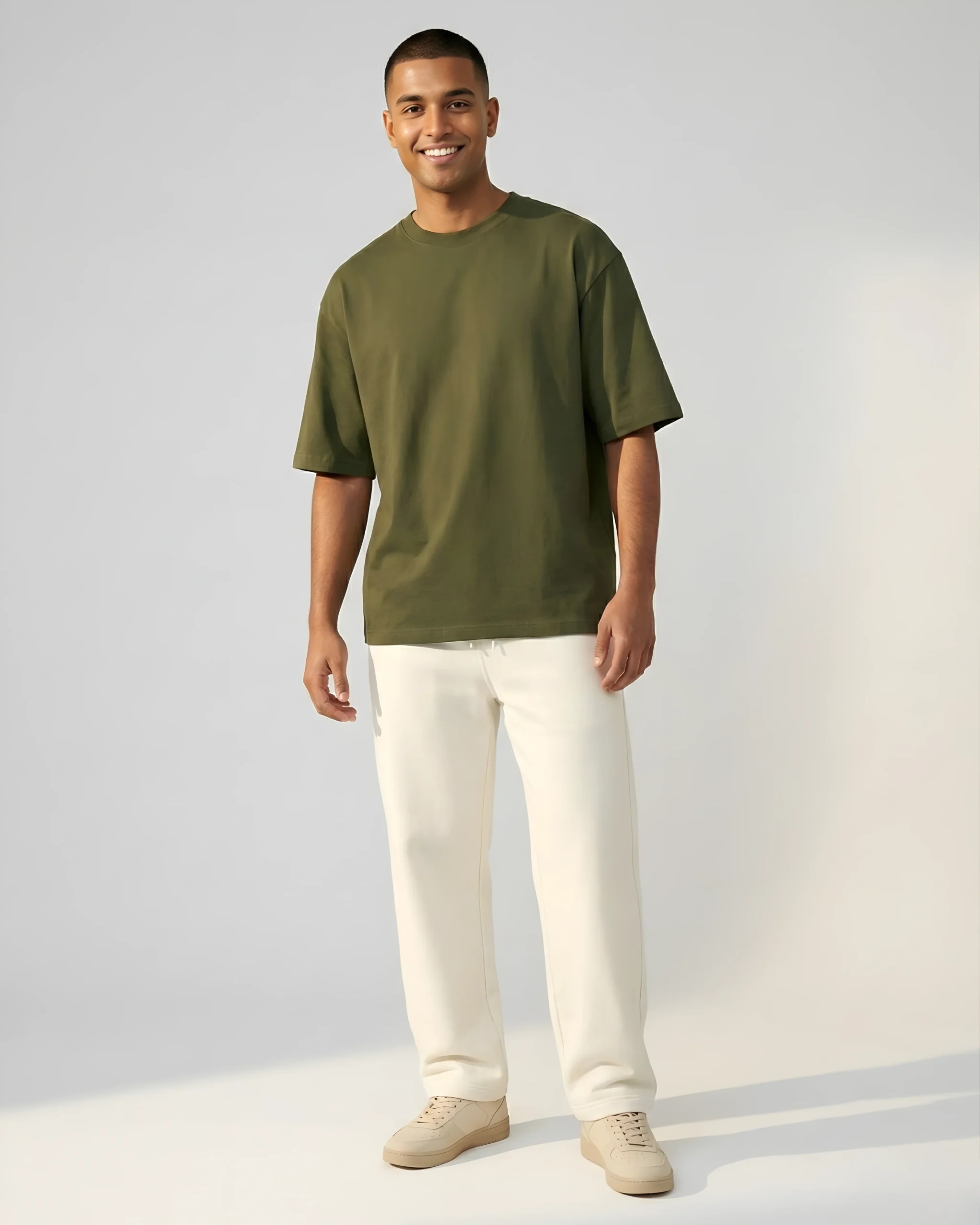 Olive Green Oversized T-Shirt & Sweatpants Off‑white ComboOlive Green Oversized T-Shirt & Sweatpants Off‑white Combo