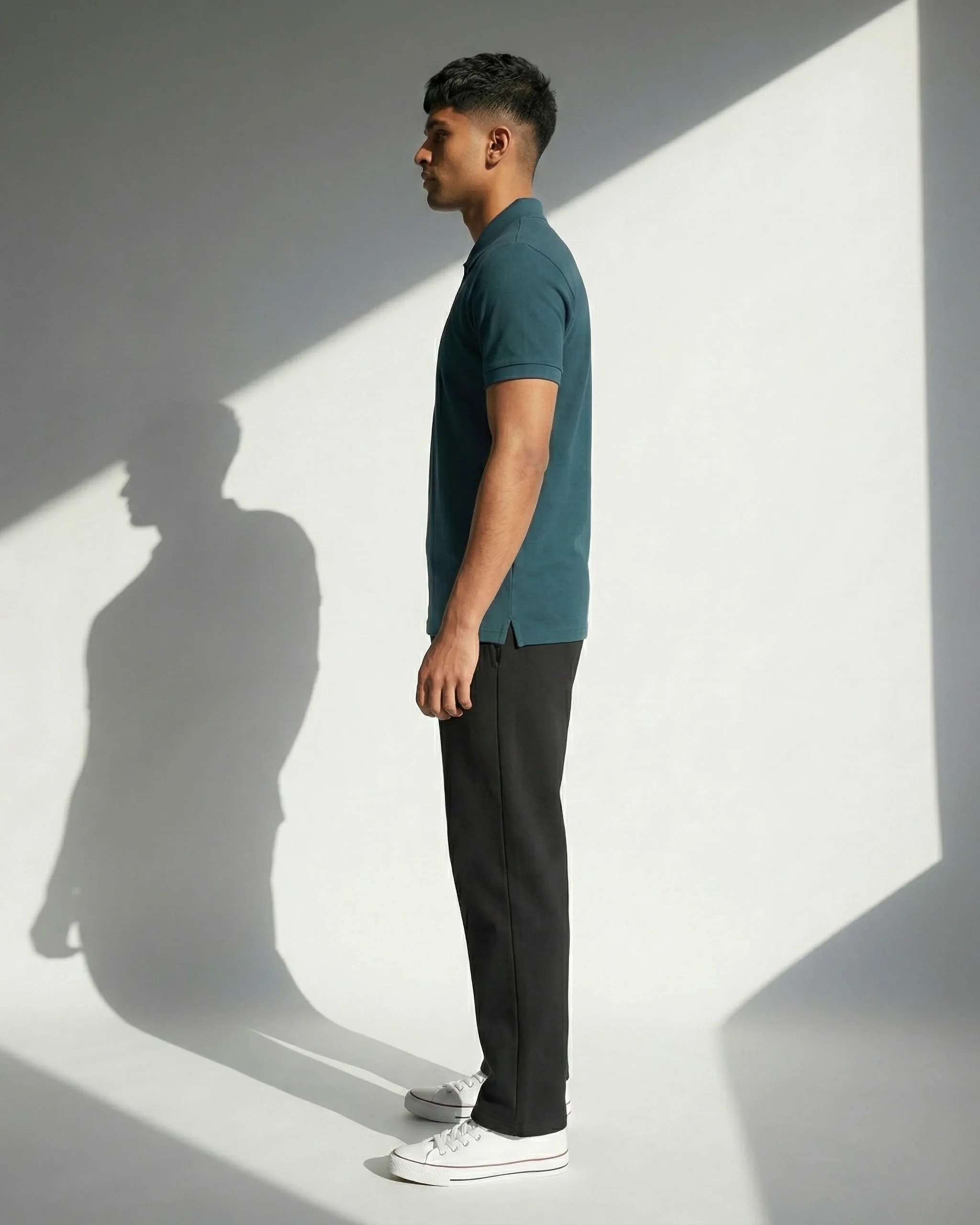 Petrol Blue Polo T-Shirt & Sweatpants Black Combo