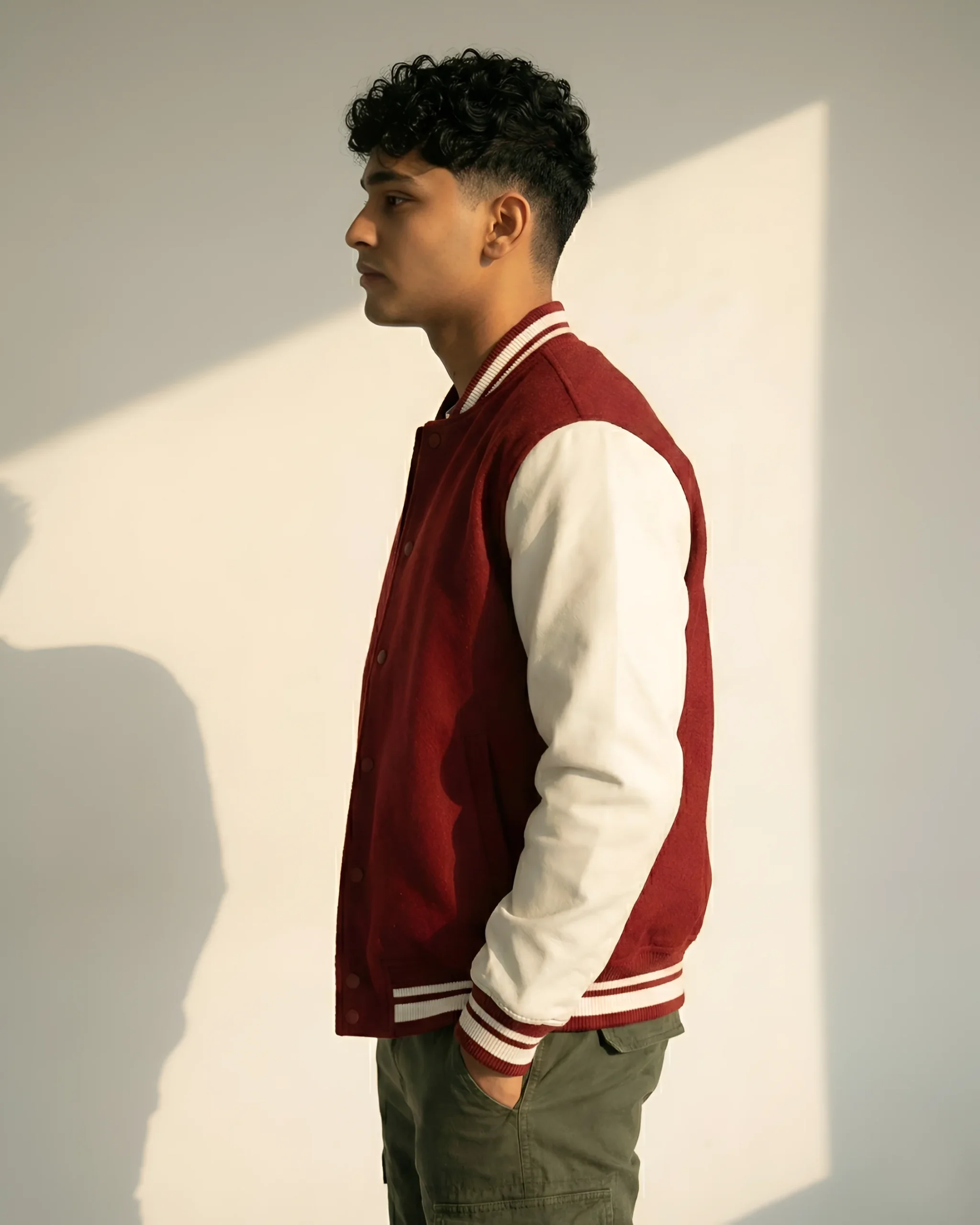 Varsity Jacket 300 GSM, 100% Cotton, Derby Ribbed Hem and Collars, Pre Shrunk, 2 Front Pockets, Button Closure, Unisex Fit, No Minimum