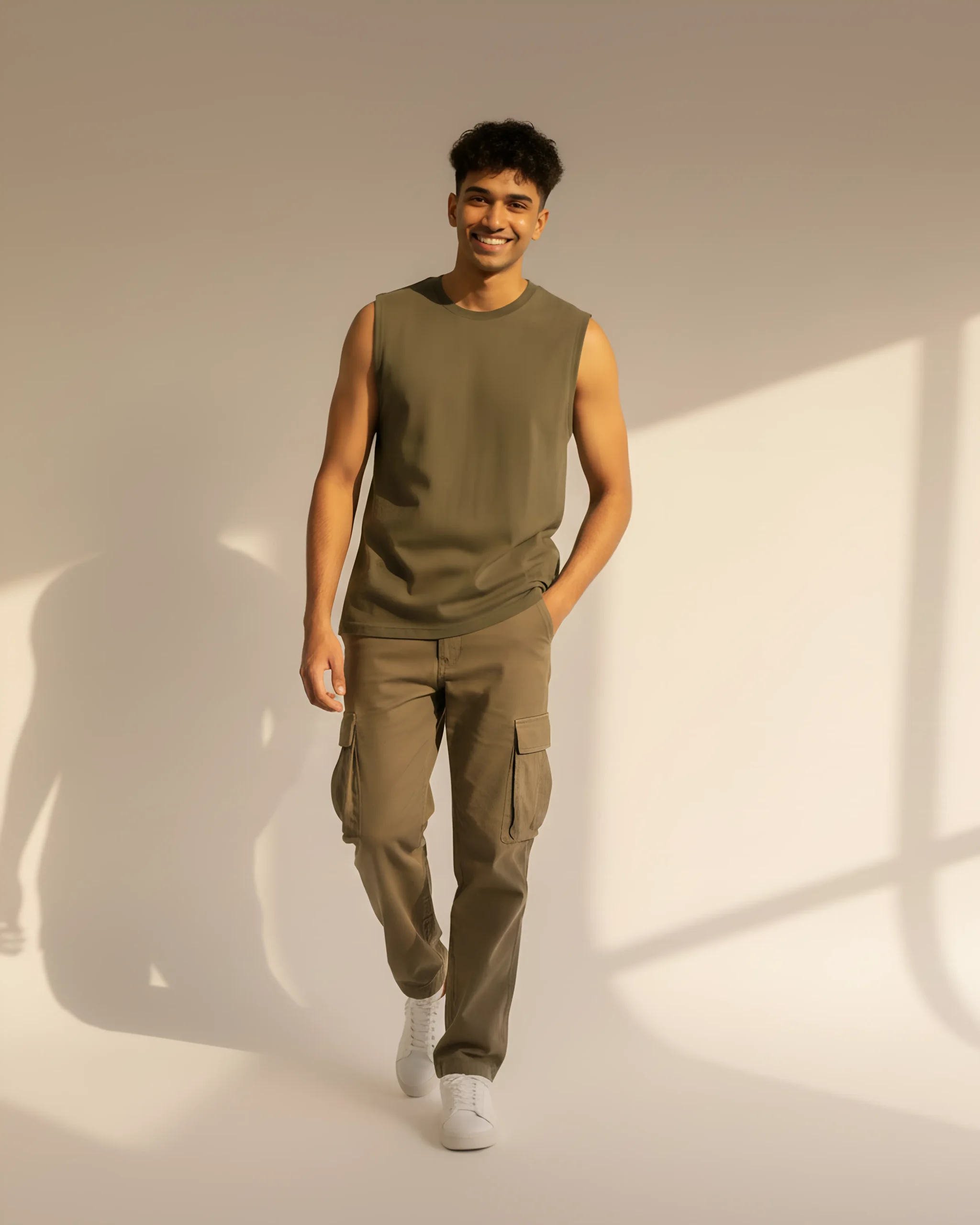Lightweight yet durable, this sleeveless vest is built for movement. Minimal design, breathable cotton, and a comfortable regular fit make it ideal for workouts or warm days.